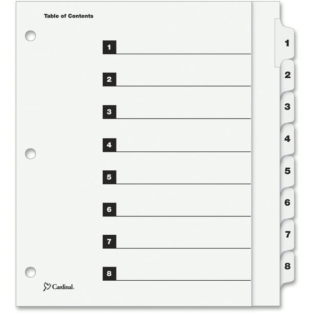 8 Tab Extra Wide Dividers Download : Dividers are paper with durable hole and tab reinforcements on both sides.. Tabs/ring edges reinforced for heavy use. 5 hole side punched fits letter size bindertek 3 ring binders and 2 ring binders extra strong mylar® reinforced tabs and page holes won't rip If you need four or more banks of tabs, please call bibbero customer service at. Dividers extend beyond sheet protectors so you can access sections big tab design provides 1.5 times more writing space. Create your own custom dividers on any printable material using our fillable printable templates.